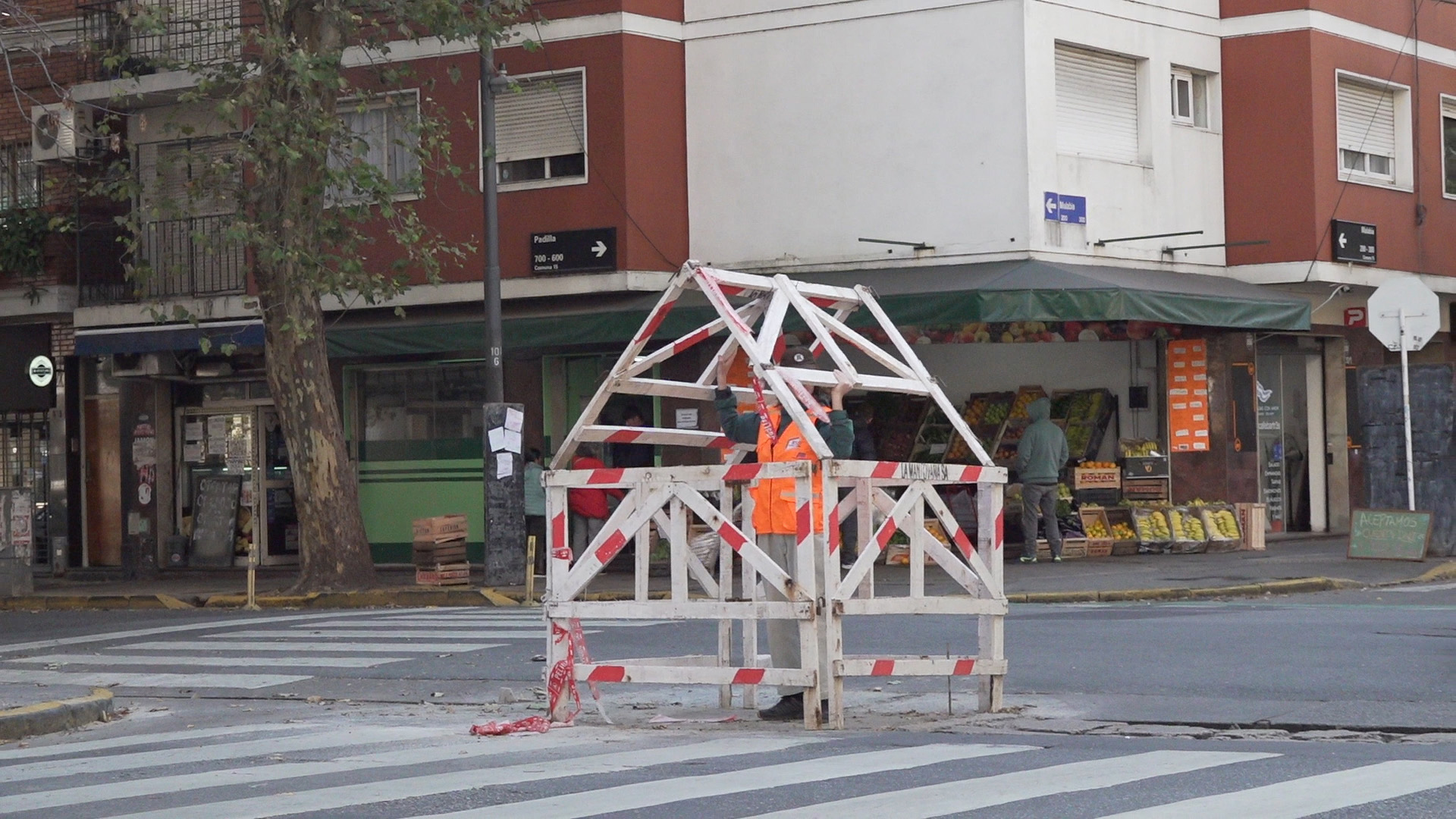 Videoinstallation, Gipsplatten, Gips, Holzlatten